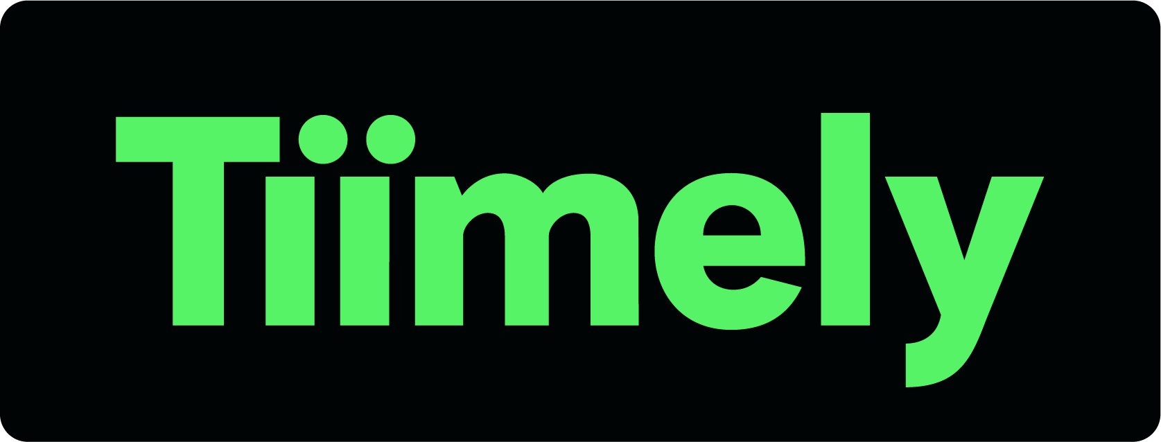 The wordmark mirrors Tiimely’s double ii, offset to indicate speed and movement.
